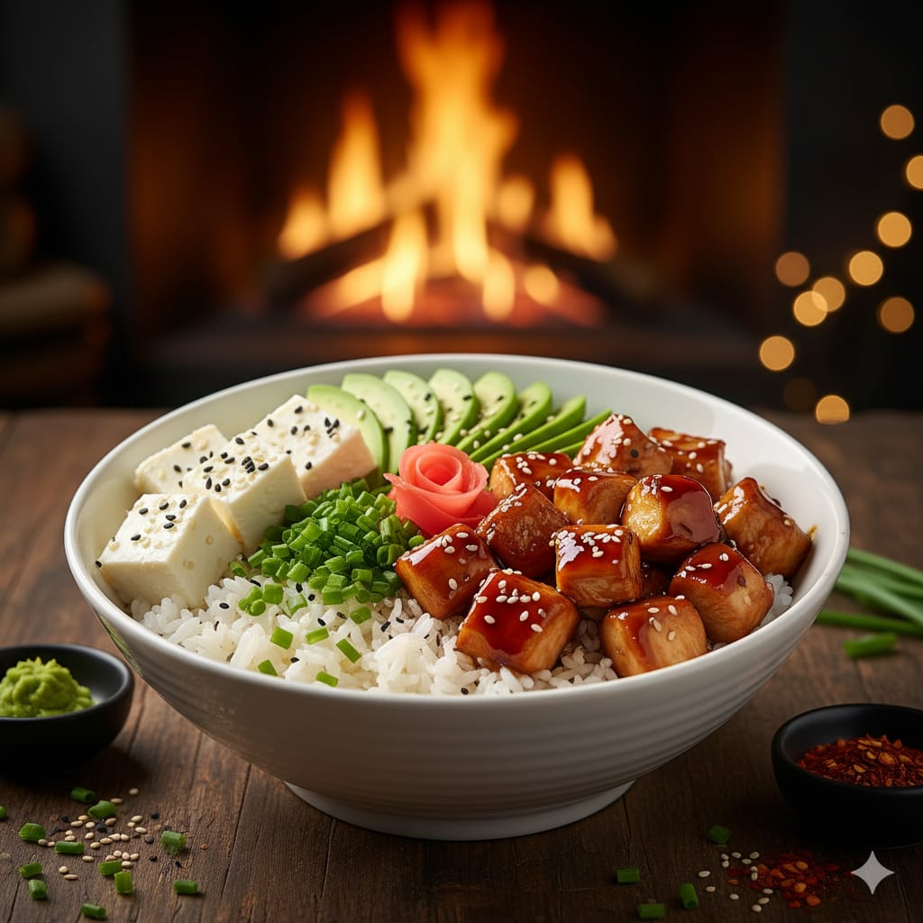 Base de arroz de sushi con cebollín, queso crema, jugoso pollo bañado en salsa teriyaki y palta cremosa. Bowl con el dulce y salado equilibrio que Japón perfeccionó.