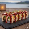 Roll de salmón, camarón, queso crema, palta y cebollín, frito en dorado panko. 10 piezas crujientes por fuera, cremosas por dentro. Puro lujo marino.