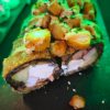 Roll de arroz con pollo y cebollín, envuelto en queso crema y coronado con guacamole fresco y crujientes papas hilo. 10 piezas de textura y sabor en cada bocado.