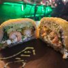 Hamburguesa reinventada con arroz y alga nori, rellena de palta, queso crema, cebollín y kanikama.
